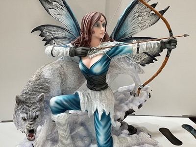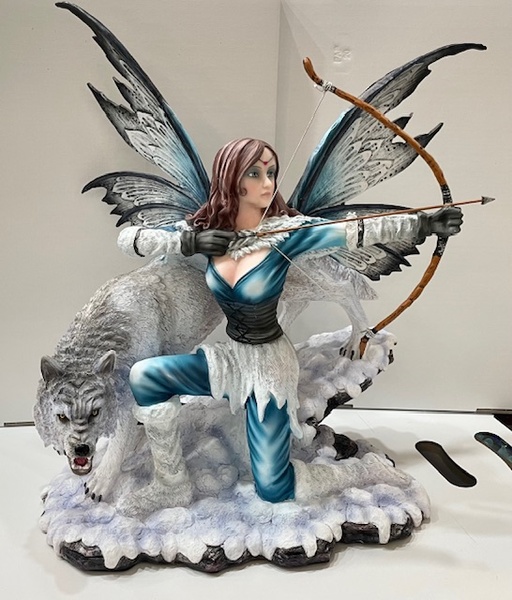 Grande statua di cacciatrice con lupo protettore altezza cm 45 larghezza cm 45 profondità cm 30